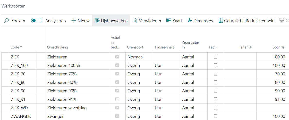 Werksoorten voor ziekte en verzuim aanmaken