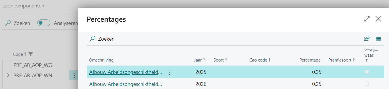 De looncomponenten en percentages van de wettelijke werknemers-/werkgeverspremies en van de ABU-gerelateerde premies zoals StiPP, scholingsfonds, ZW-aanvulling en Sociaal fonds zijn hard coded in MSF vastgelegd. Het is niet mogelijk om deze handmatig aan te passen. In geval van wijzigingen worden de nieuwe percentages via een release uitgeleverd, over het algemeen jaarlijks.