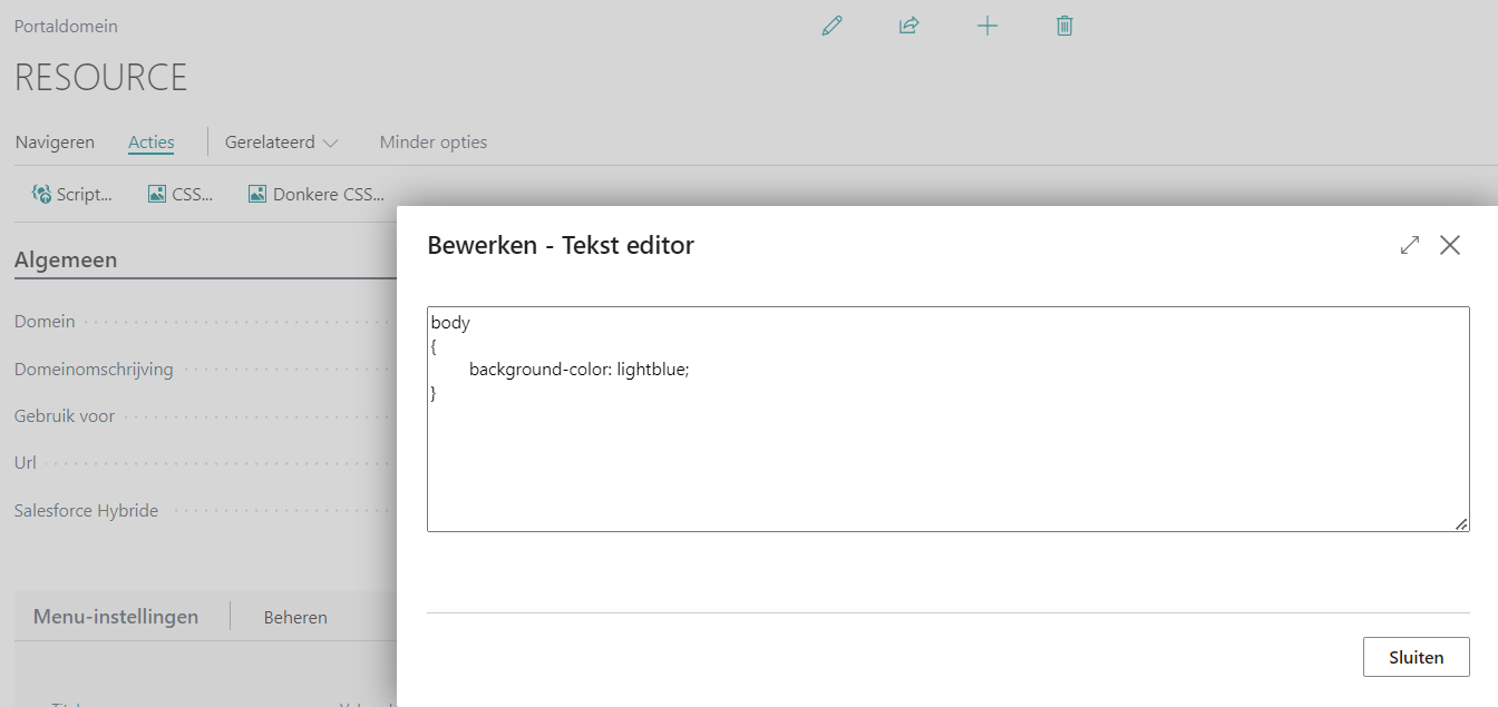 Via deze knop is het mogelijk om een custom CSS in te stellen. Deze wordt toegepast na het verversen van de portalconfiguratie. Zie ook Portalconfiguratie opnieuw laden.