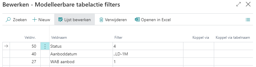 - Zorg dat de regel met tabelnummer 11076239 is geselecteerd en klik in de sneltab op Filters.
