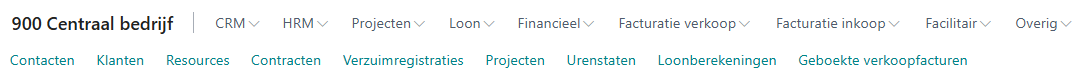Bovenaan kunt u met de navigatie schakelen tussen klanten, resources, projecten, urenstaten en andere belangrijke lijsten met informatie.