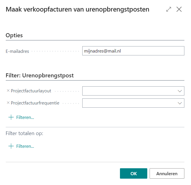 Rapport Maak verkoopfacturen van urenopbrengstposten