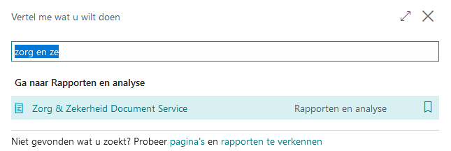 Klik op de hyperlink Zorg & Zekerheid Document Service. Het rapport wordt dan direct uitgevoerd.