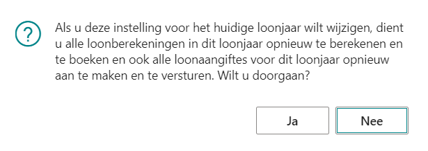 Als u deze optie probeert te wijzigen voor het huidige loonjaar, krijgt u deze melding: