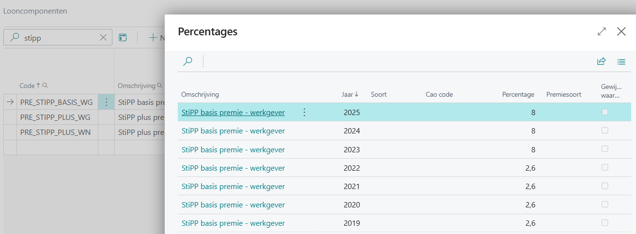 De looncomponenten en percentages van de wettelijke werknemers-/werkgeverspremies en van de ABU-gerelateerde premies zoals StiPP, scholingsfonds, ZW-aanvulling en Sociaal fonds zijn hard coded in MSF vastgelegd. Het is niet mogelijk om deze handmatig aan te passen. In geval van wijzigingen worden de nieuwe percentages via een release uitgeleverd, over het algemeen jaarlijks.