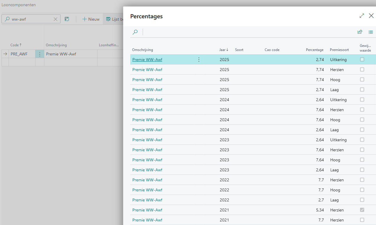 Het veld Premiesoort op de pagina Loonregels op een loonberekening geeft aan of de hoge of lage premie is toegepast. Er zijn ook enkele situaties waarin met terugwerkende kracht de lage premie moet worden herzien in de hoge premie.