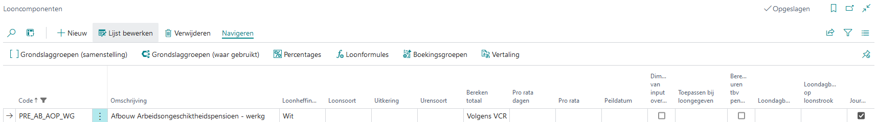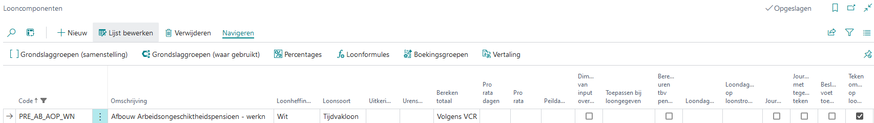 Koppel de looncomponent aan een grondslaggroep (doorgaans PENSIOENGRONDSLAG_BW, maar dat kan in uw situatie een andere grondslaggroep zijn). |