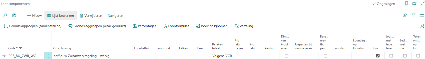 Onderstaande looncomponenten zijn hard coded. Dit houdt in dat de data in de broncode van MSF is ingesteld en u dat niet handmatig kunt wijzigen.