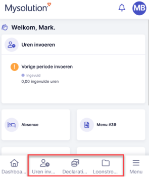 - HourRegistration (urenregistratie): toont of een urenstaat aangemaakt of ingeleverd moet worden. Of hoeveel uren zijn ingevoerd voor de huidige periode. Naast de tekst wordt ook een statusicoon getoond, zie Statusiconen in tegels.