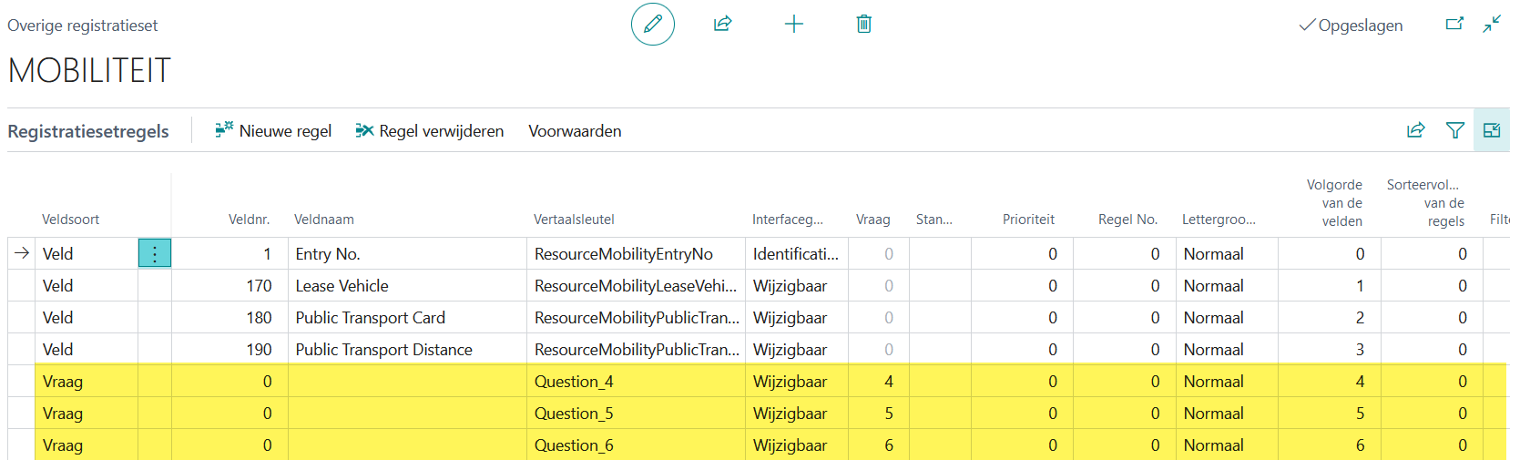 Voeg dan per vraag een regel toe aan de overige registratieset: