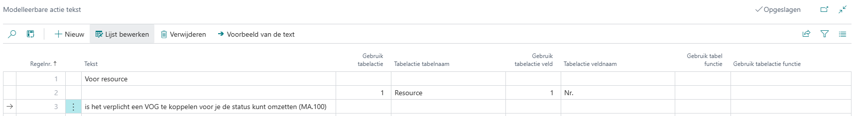 De pagina Modelleerbare actie tekst is van toepassing als in het veld Actie van een modelleerbare actie (MA) een van de volgende waarden is ingesteld: