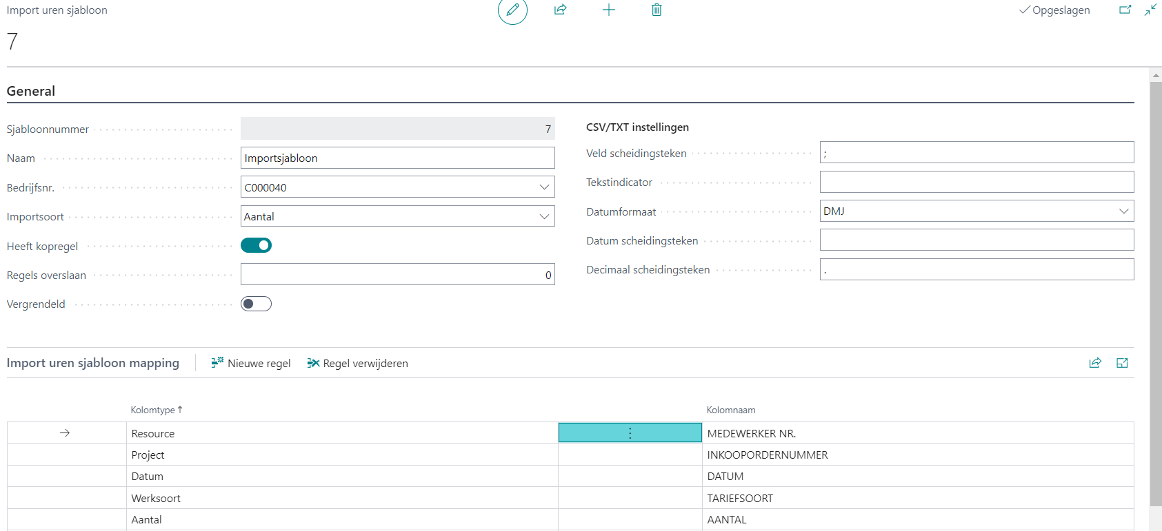 In deze sneltab stelt u de vertaling in voor de kolommen uit het importbestand. Zie Sneltab Import uren sjabloon mapping.