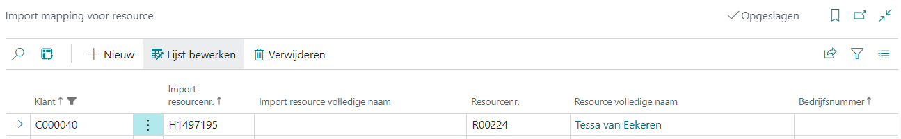 Als de nummers/codes voor de medewerkers van de klant niet overeenkomen met de resourcenummers in MSF, is een mapping nodig. U koppelt de nummers uit het importbestand met de juiste resourcenummers in MSF.