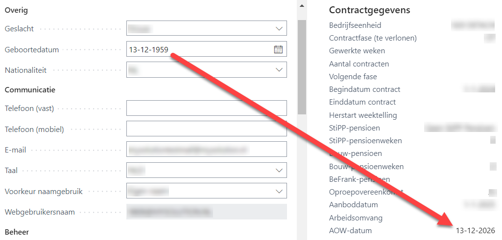 Toont de datum waarop de resource de AOW-gerechtigde leeftijd (heeft) bereikt.