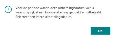 Belangrijk: Afrekeningen van reserveringen kunt u alleen in het laatste, actuele loontijdvak doen. Als na de ingevulde datum al loonberekeningen bestaan, wordt de reservering niet uitbetaald. Daarom krijgt u een foutmelding als na de ingevulde datum al geboekte of ongeboekte loonberekeningen bestaan.