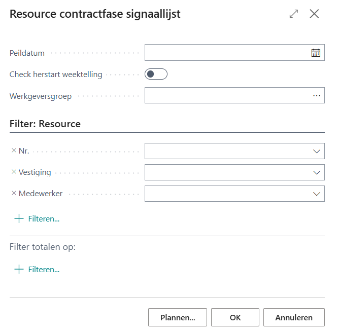 | Medewerker | Selecteer een medewerker als u in de signaallijst alleen de resources wilt zien die aan de betreffende medewerker zijn gekoppeld. |