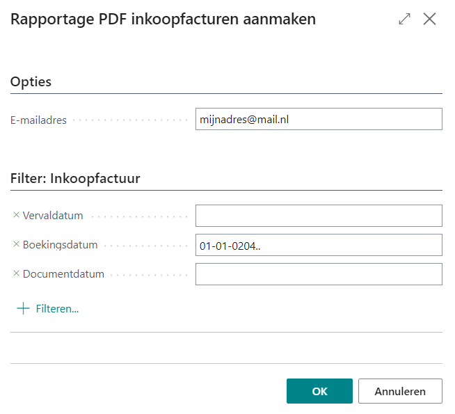 Rapportage PDF inkoopfacturen aanmaken