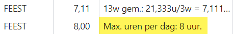 Stel desgewenst in hoeveel uren per dag er maximaal aan feestdaguren toegewezen mogen worden. Bijvoorbeeld 10 of 8.