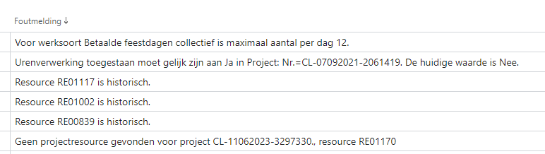 - Aanmaken van een urencontrolelijst op de (juiste) projectresource via de urenimportlijst