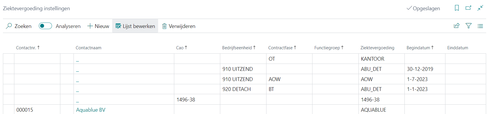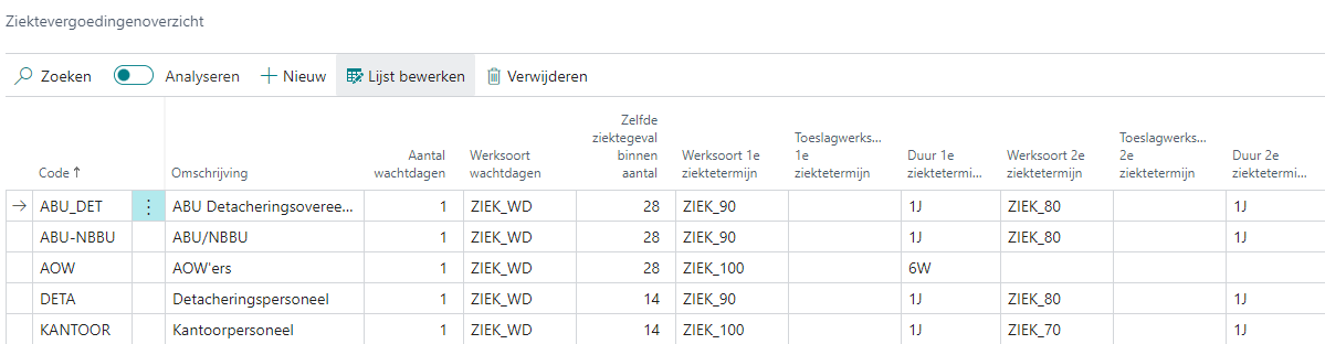 Combinaties van bovenstaande zijn ook mogelijk. Omdat bijvoorbeeld per contractfase verschillende ziektevergoedingregelingen van toepassing kunnen zijn voor verschillende bedrijfseenheden, kunt u de ziektevergoedingregeling per bedrijfseenheid én contractfase instellen.