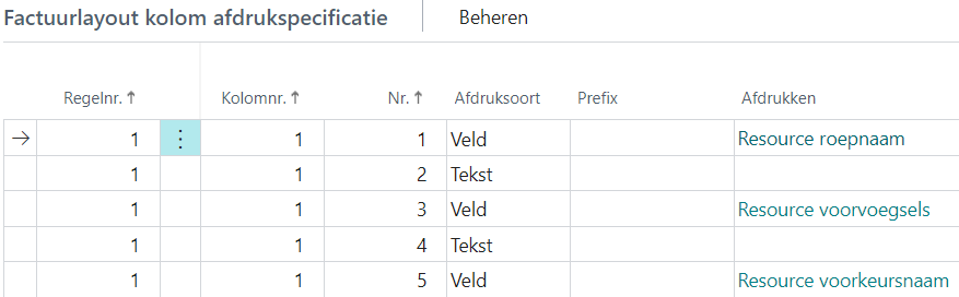 - Factuurlayout kolom afdrukspecificatie wat precies afgedrukt moet worden.