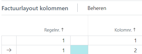 Had u gekozen voor 4Kolom en wilt u alleen in de eerste en vierde kolom een factuurelement opnemen, dan voert u op de eerste regel kolomnummer 1 in en op de tweede regel kolomnummer 4.