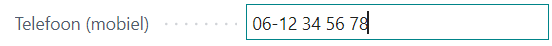 Een telefoonnummer kan op verschillende manieren worden vastgelegd, bijvoorbeeld met of zonder spaties en/of koppeltekens. Om sms- en WhatsApp-berichten via het Business Messaging Platform van CM te kunnen matchen (zie ook Pagina Gesprek en Pagina Gesprekken overzicht), is een vast formaat van belang. Daarom wordt het ingevoerde nummer automatisch naar het juiste formaat omgezet.