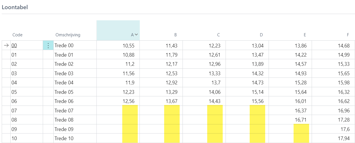 gekoppeld zijn aan een loontabel die gekoppeld is aan de cao van de projectresource. Dat kunnen meerdere loontabellen zijn.