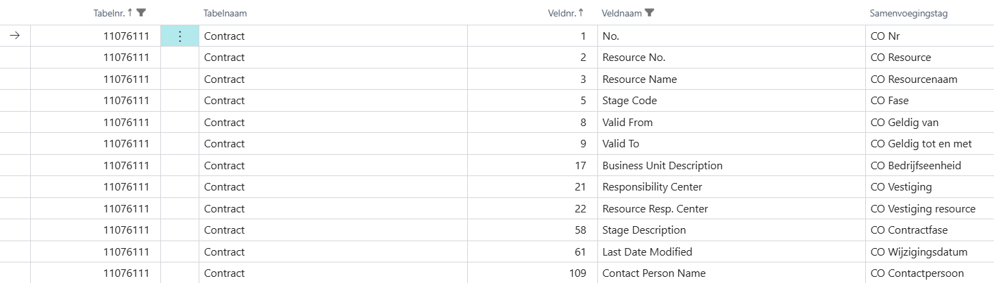 Ga eerst na in welke tabel het veld staat dat u wilt toevoegen. Dat kunt u bijvoorbeeld doen door de pagina te openen waar het veld in staat, op Ctlr+Alt+F1 te drukken en op de pagina Pagina-inspectie de code en/of naam van de brontabel op te zoeken en deze te noteren. Controleer vervolgens of deze tabel al voorkomt op de pagina Samenvoegvelden: