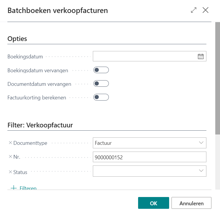 Opmerking: Bij het batchboeken van verkoopfacturen worden creditfacturen ook meegenomen.