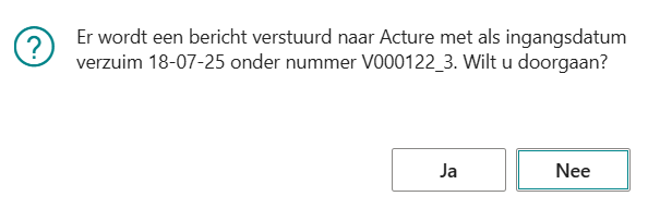 - U krijgt een melding dat een bericht naar Acture wordt verstuurd met: