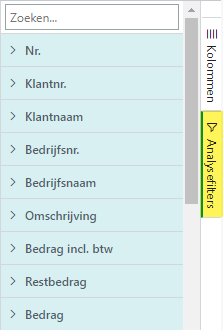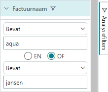 U kunt de gegevens verder verbijzonderen door het reguliere Filterdeelvenster te openen en daar filters in te stellen op bepaalde velden zoals u gewend bent. U kunt echter ook gebruik maken van de Analysefilters. Hiermee is het eenvoudiger om de gewenste filtering op te bouwen.
