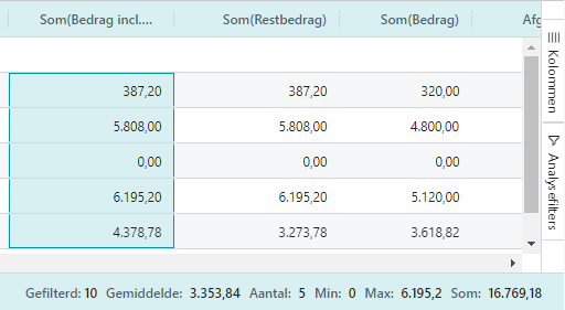 Gegevens selecteren zorgt voor berekeningen vergelijkbaar met Excel, zoals aantal min, max, som etc.