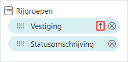 Het is mogelijk de groepen te sorteren door in het vak Rijgroepen op het veld te klikken. Eenmaal klikken betekent oplopend sorteren, nogmaals klikken sorteert aflopend. Nog een keer klikken op de kolomkop verwijdert de sortering.