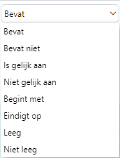 Voor het soort filter zijn een aantal opties mogelijk zoals Bevat, Leeg, Niet leeg, etc.
