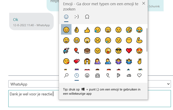 Emoji's toevoegen aan een bericht kan via de sneltoetscombinatie Windows-logotoets+punt (.)