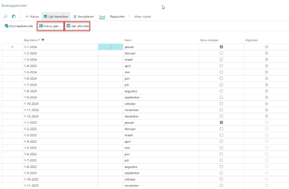 Om een jaar financieel te kunnen afsluiten en het resultaat te kunnen boeken is het noodzakelijk om voor het komende jaar de boekingsperioden te hebben aangemaakt.
