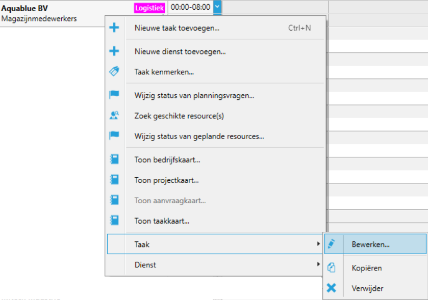 desgewenst nog meer diensten toevoegen aan de taak. Zie ook Een dienst toevoegen of bewerken (Planningmodule).