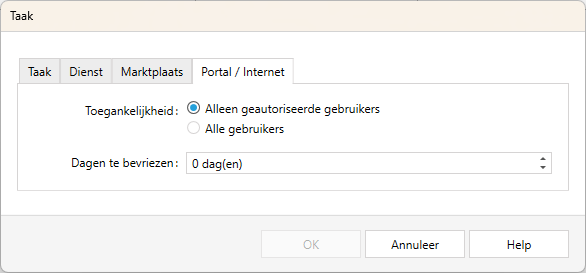 Als de optie Alle gebruikers is geselecteerd, mogen alle contactpersonen van het bedrijf die kunnen inloggen op de klantportal de planningtaak zien en wijzigen op de klantportal.