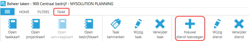 - vanuit de sneltab Diensten van een planningtaak in MSF. Zie Planningtaak en Sneltab Diensten.