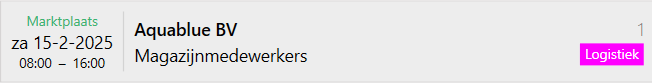 - De dagaanduiding en datum. Als in de dienst de optie Publiceer op marktplaats is aangevinkt, staat boven de datum het woord Marktplaats (groen weergegeven). Zie ook Dienst publiceren op de marktplaats.