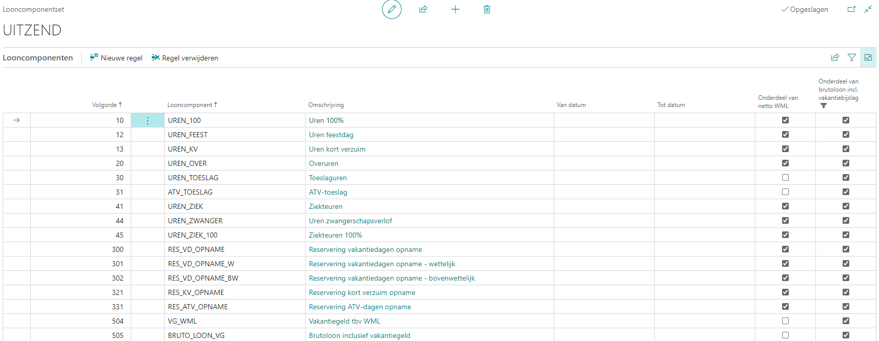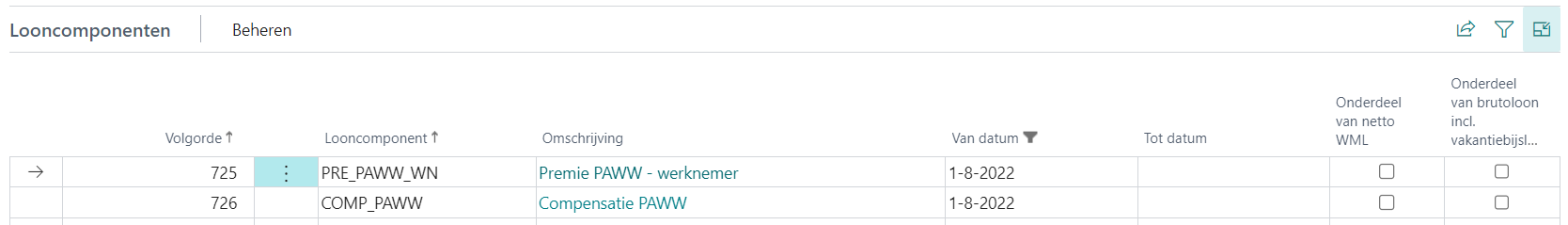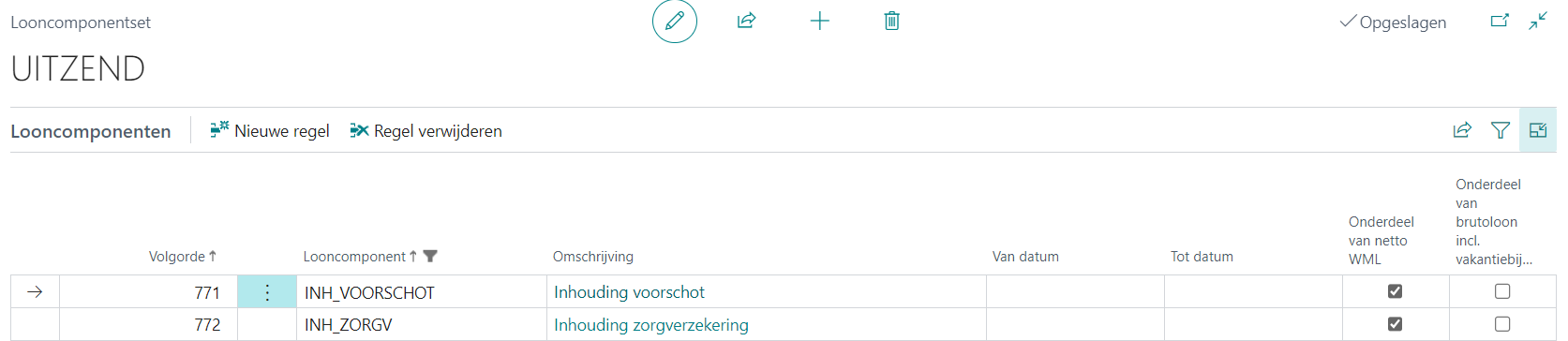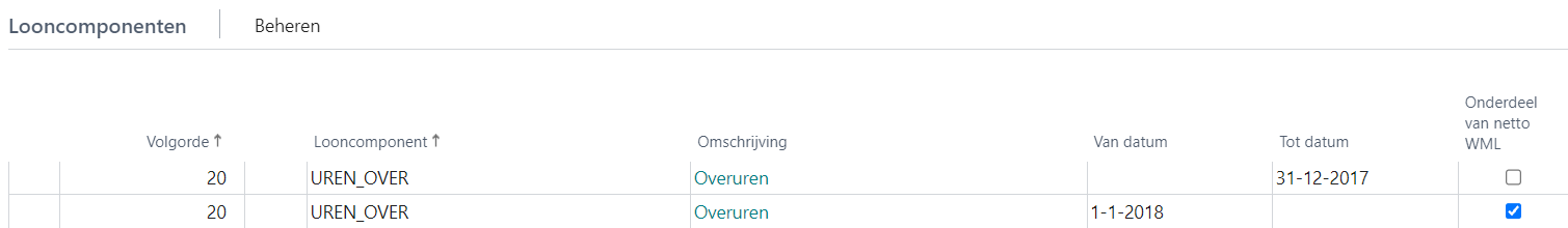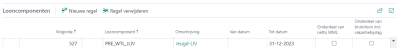 Bij componenten die onderdeel zijn in de berekening van het netto WML moet de optie Onderdeel van netto WML zijn aangevinkt.