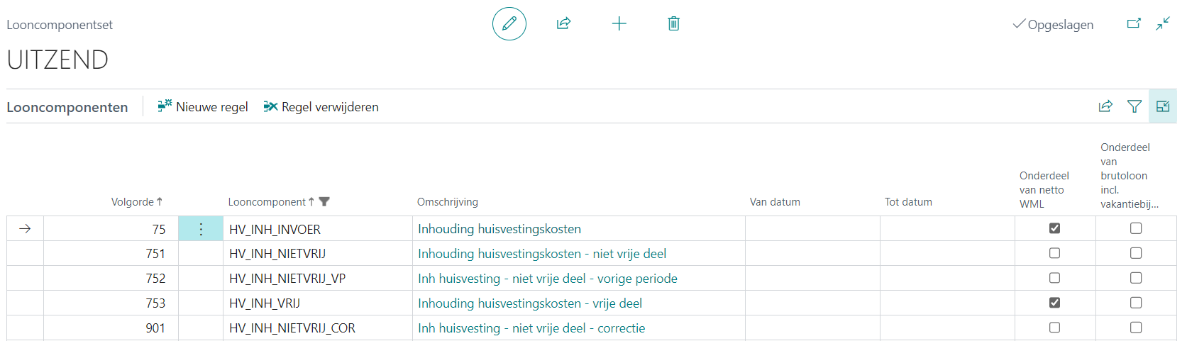 Looncomponentset verwijderen alleen vanuit lijst