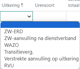 Ten behoeve van de verloning van (ziektewet)uitkeringen kunt u in het veld Uitkering een van de volgende waarden instellen: