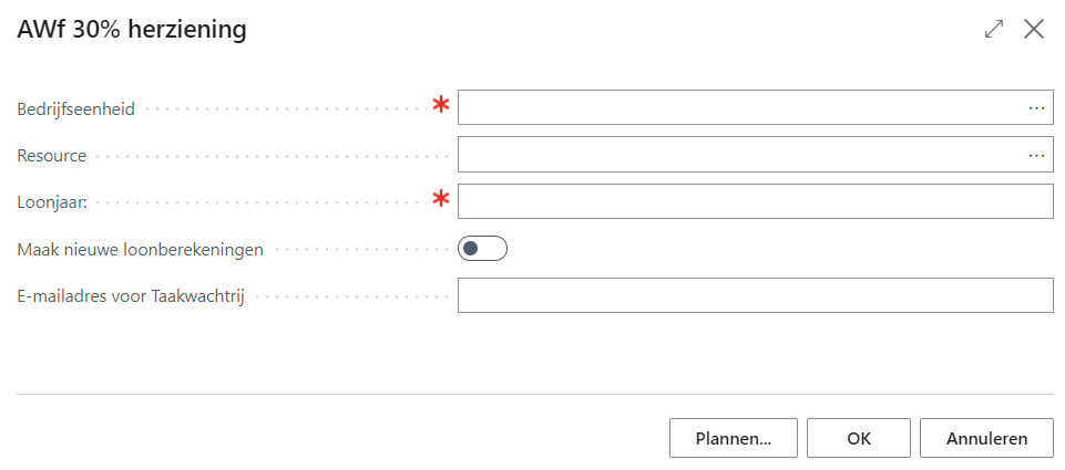 Het is ook mogelijk om het rapport uit te voeren als het loonjaar is afgesloten om inzicht te krijgen voor welke resources de lage AWf-premie moet worden herzien. Als in het rapport het veld Maak nieuwe loonberekeningen is ingeschakeld, worden ondanks het afgesloten loonjaar herberekeningen aangemaakt met de gewijzigde AWf-premie. Na goedkeuring en boeking moeten deze nog worden verwerkt in een correctieaangifte voorgaand jaar. Het is hierbij niet nodig om het afgesloten loonjaar te heropenen.