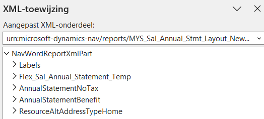 | LabelWageNoTax | Tekstlabel voor loon. Wordt alleen afgedrukt in geval van internationale situaties waarbij de resource geen loonbelasting hoeft te betalen.