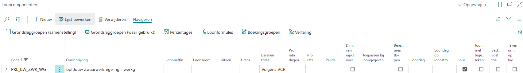 Onderstaande looncomponenten zijn hard coded. Dit houdt in dat de data in de broncode van MSF is ingesteld en u dat niet handmatig kunt wijzigen.