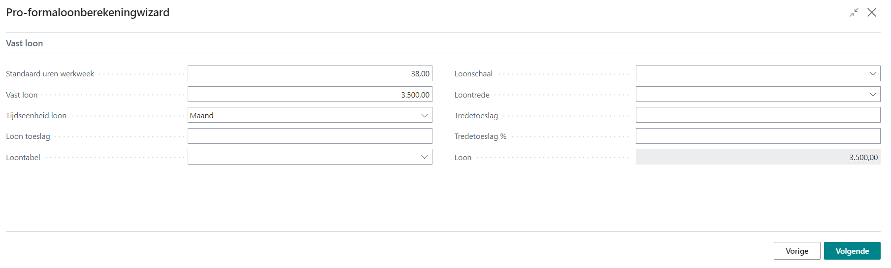 Deze stap in de pro-formaloonberekeningwizard wordt alleen getoond als in de stap Contractfasen een fase is gekozen waarin het veld Vast loon is ingeschakeld.
