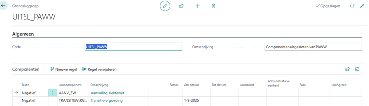 Let op: Ook in de grondslaggroep die gekoppeld is aan component COMP_PAWW moet de transitievergoeding een einddatum krijgen: