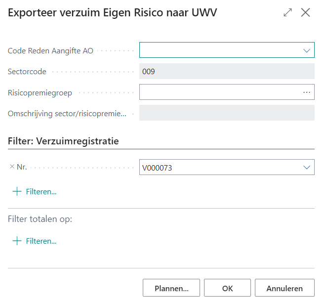 Rapport Exporteer verzuim Eigen Risico naar UWV